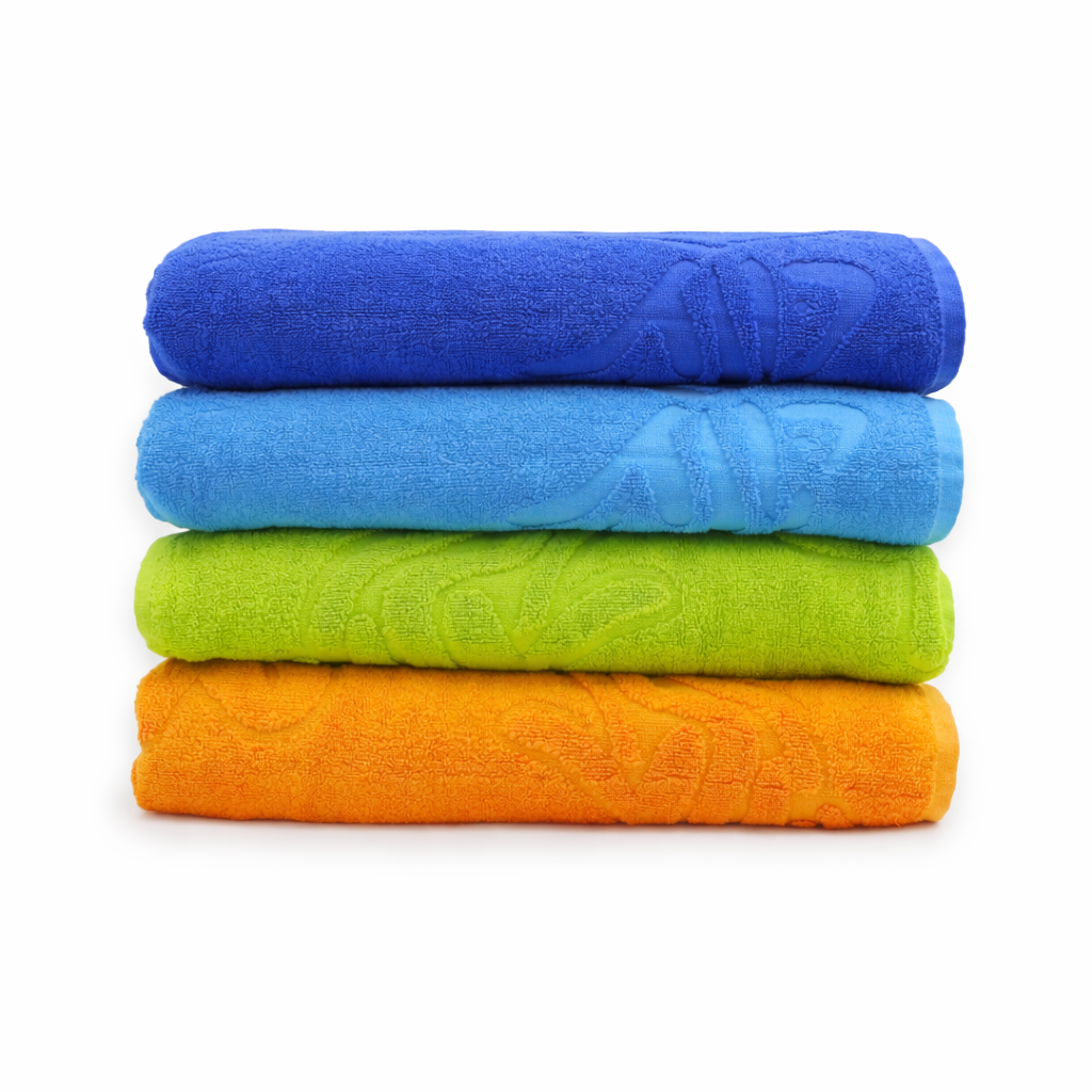 • Incluye 1 toalla playera de cada color (azul, turquesa, naranja y verde limón).